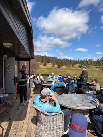 Vi startet dagen med oppvarming på driving rangen, etterfulgt av en gjennomgang av regler og spilleformat med turneringsleder. Denne gjennomgangen, ca. 30 minutter før start, vil vi fortsette med på alle klubbturneringer fremover, slik at alle har en felles forståelse av spillet.
